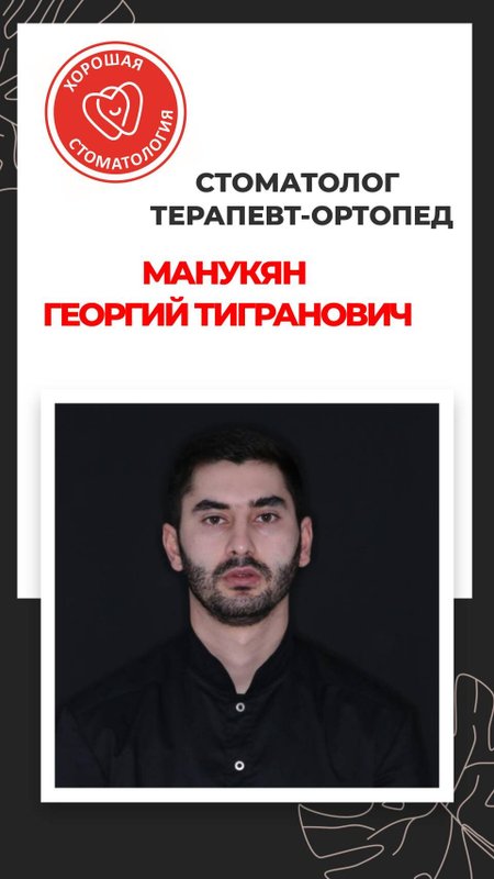 Манукян Георгий Тигранович является стоматологом-ортопедом. Георгий Манукян в том числе проводит эндодонтическое лечение. Вы можете записаться к Георгию Манукян, если вам требуется заменить утраченный зуб или если какой-либо из зубов находится в таком состоянии, что при помощи пломбы его не спасти. Зубы перед протезированием должны быть тщательно санированы, так что перед обращением к ортопеду стоит посетить стоматолога-терапевта.